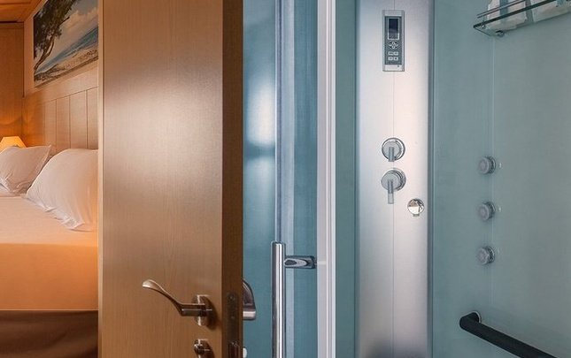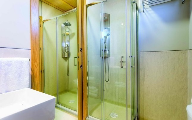 La característica principal de esta cabaña es la columna de hidromasaje con efecto cascada y lluvia del cuarto de baño junto con el espejo …